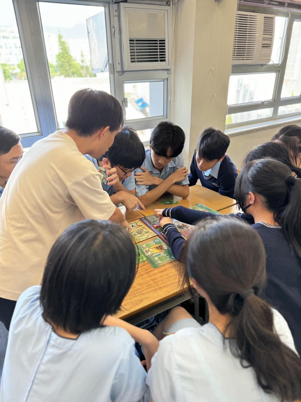 香港戶外生態教育協會到校為每班中五同學進行桌遊學習活動,每班的三位導師藉教導同學玩機構設計的《森林的法則》桌上遊戲,學習香港的生態和生物多樣性。同學十分投入活動,並透過遊戲的方式學習到相關議題。