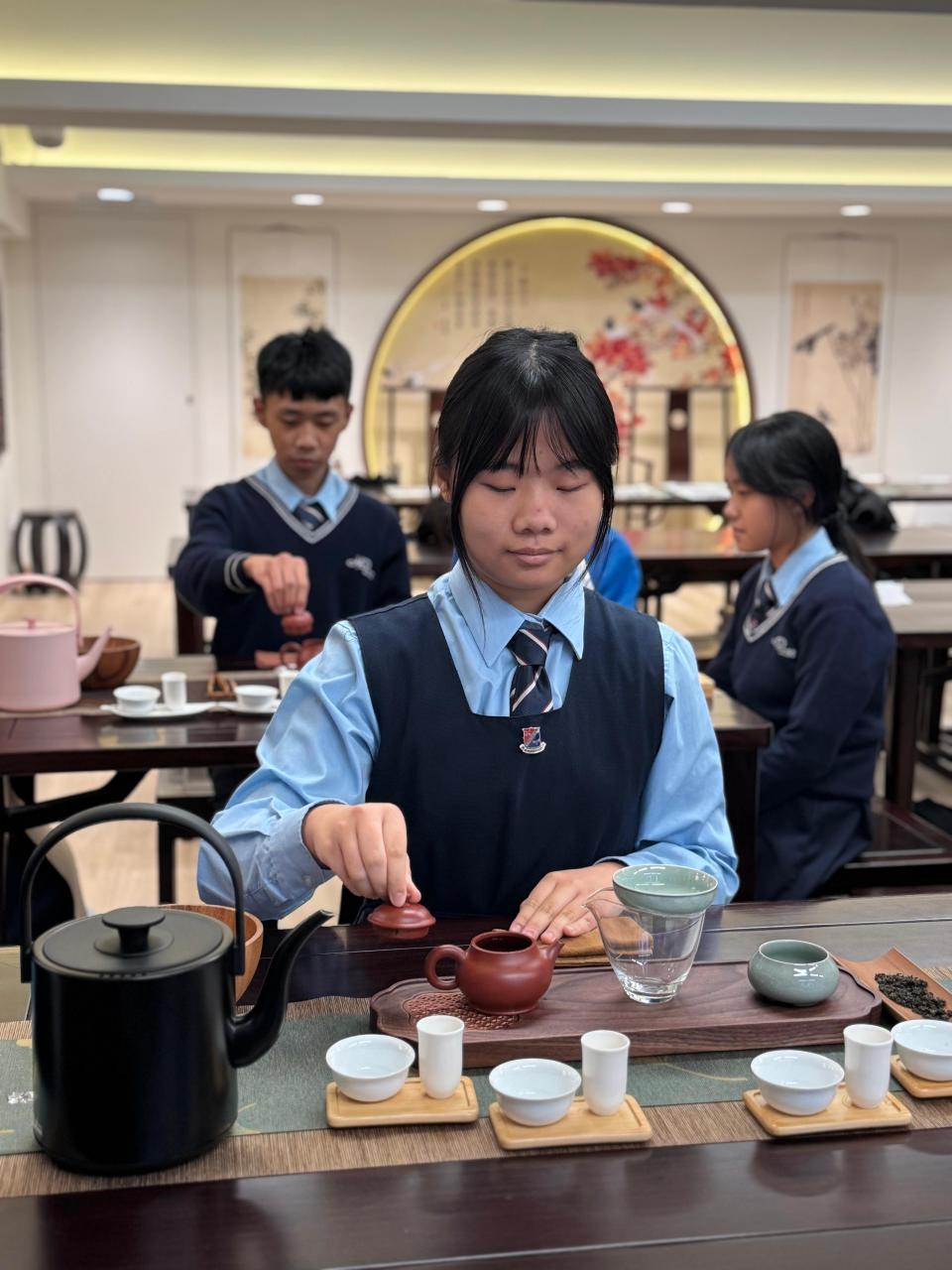 透過這次課程,同學不僅掌握了一門生活技藝,更能體驗靜心的可貴,從沖泡手法到心境,由內而外感受茶道精神。