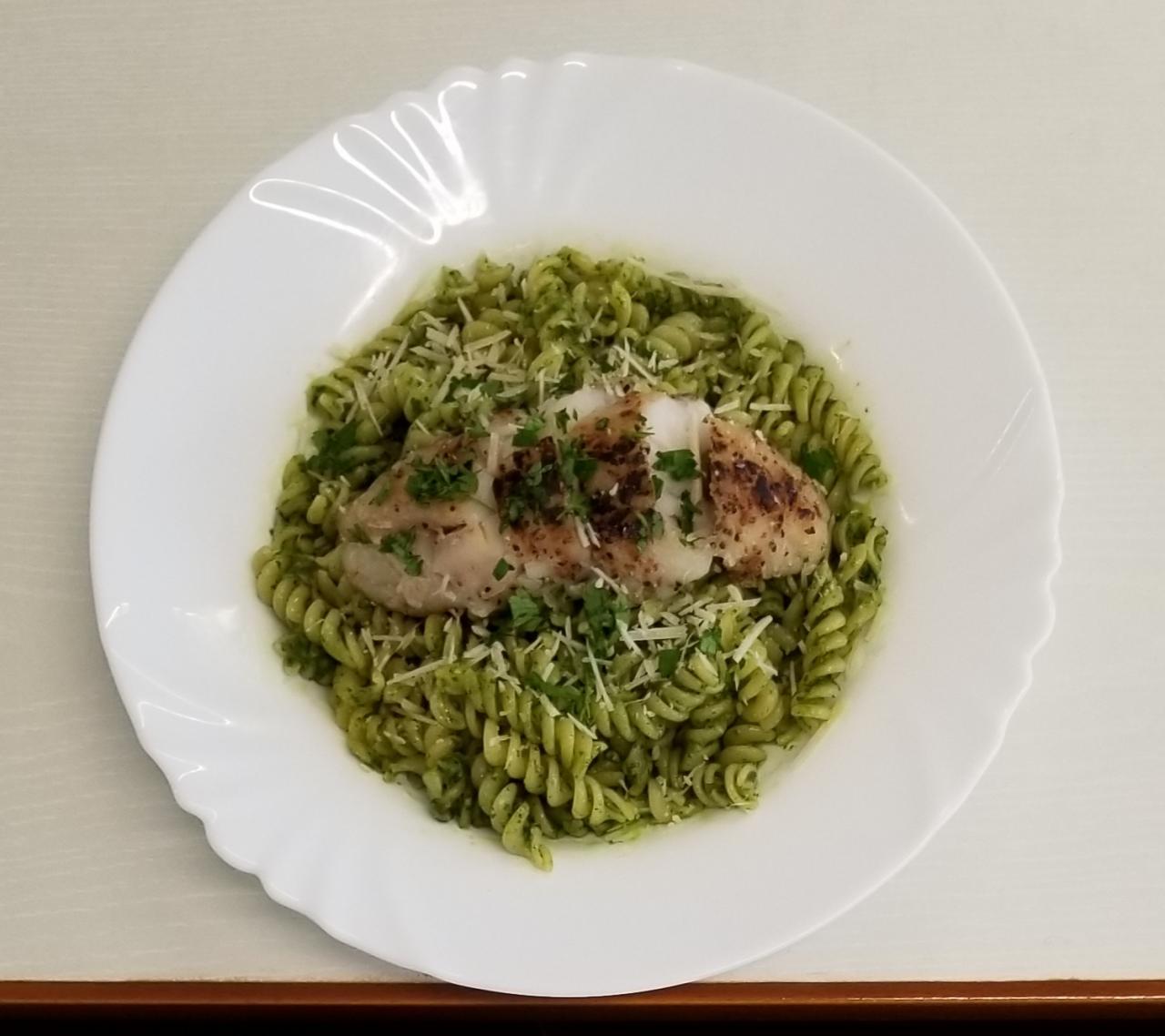 Dish: Grilled Flounder with Pesto Pasta