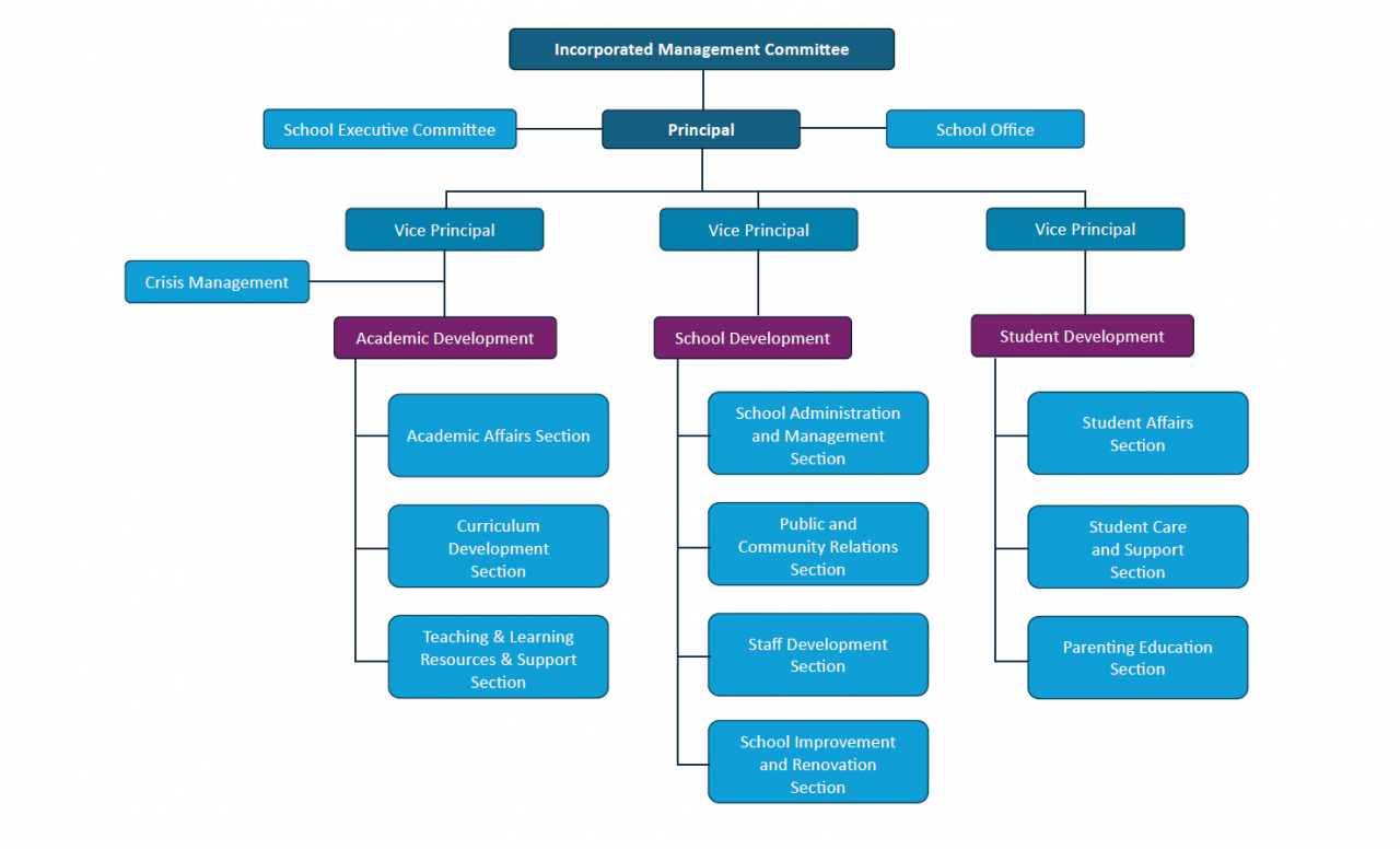 • All teaching and administrative affairs are coordinated by the Principal, with assistance from Vice-Principals and Assistant Principal.