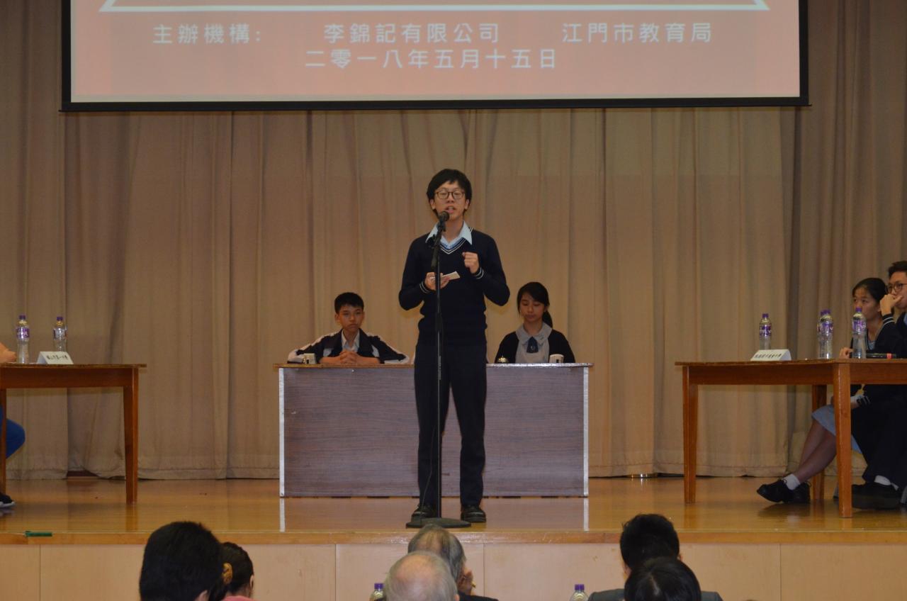 我校中文演辯學會參加了「第三屆李錦記杯粵港高中辯論賽」,與香港和江門市中學作辯論交流,最終取得亞軍成績。同時,四乙班李嘉敏同學獲選為「最佳辯論員」。